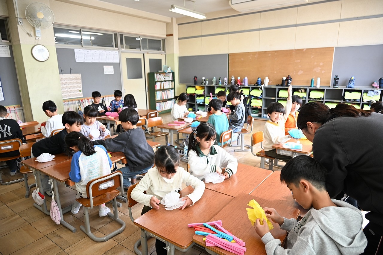 1年生は今日も新1年生を迎える準備をしていました。今日は花をつくりました。新1年生の子が小学校を楽しみに思えるようにがんばる姿がすてきです。