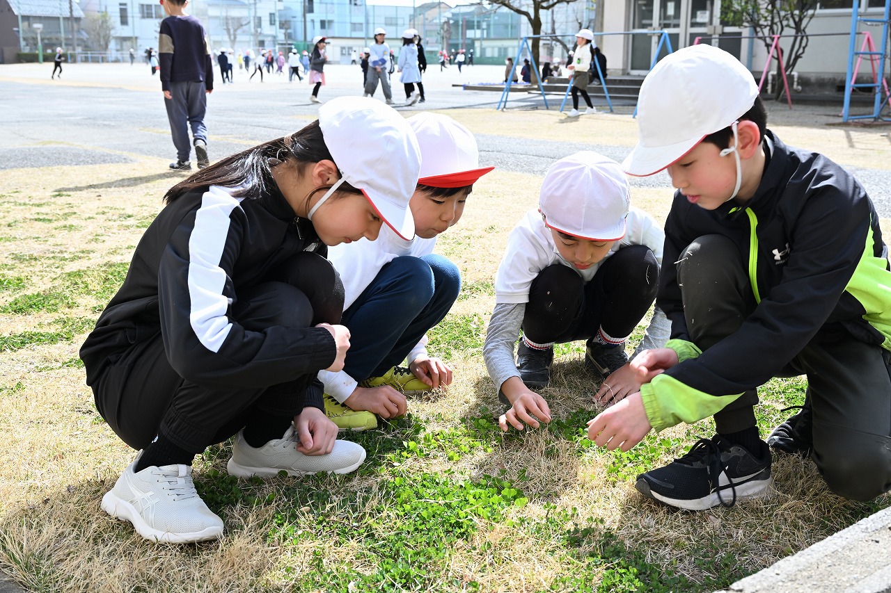 四つ葉のクローバーを探していました。見つかったかな?