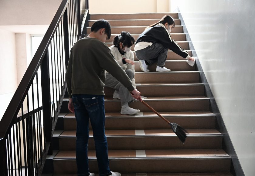 その6年生は奉仕活動として、普段あまり掃除を行わない南舎の清掃活動を行いました。