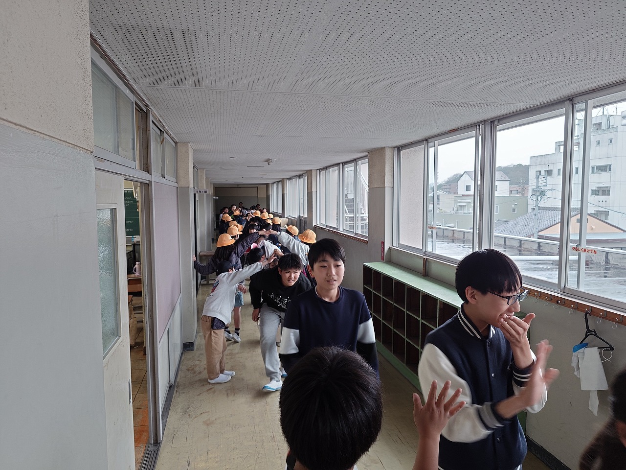 帰りに在校生が花道をつくって送り出しました。最後のお別れができました。