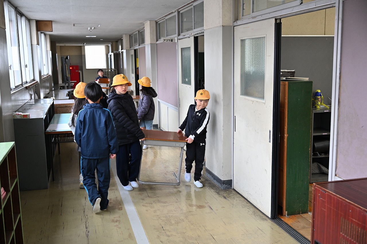 午後から引っ越しが引っ越しが行われました。来年度は教室配置が変更となるため、一部の学年で机の移動を行いました。