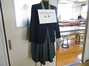 10月24日(金)に育成会主催によって、制服リサイクルを行いました。これまで卒業生の方など、いらなくなった制服や体操服、カバン、体育館シューズなどを中学校に寄付していただきました。今回は授業参観の前に実施しましたが、13時開始前から廊下に列ができるほどでした。90点以上の制服や体操服などが、再び使っていただけることになりました。育成会の活動にご協力いただき、ありがとうございました。これからも、不要な制服や体操服などがありましたら、学校の玄関にリサイクルボックスがありますので、そちらにお持ちください。