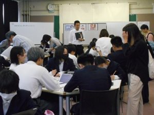 10月24日(金)の授業参観の社会の授業で、模擬選挙を行いました。教科担任の大岩先生が、岐阜市選挙管理委員会から本物の投票箱と記載所を借りてきて、あと3年後に与えられる選挙権を行使し、どのように投票を行うかについて学ぶ授業でした。投票前には、3人の候補者のマニュフェストの資料から、自分が納得できる政策や疑問をもった政策について、学習班で出し合いながら、互いの考えを出し合いました。授業参観だったため、保護者の方も学習班に入り、話し合いに参加することができました。国政に参加することの意義や選挙によって投票することの大切さを学ぶことができました。