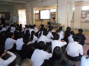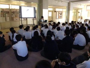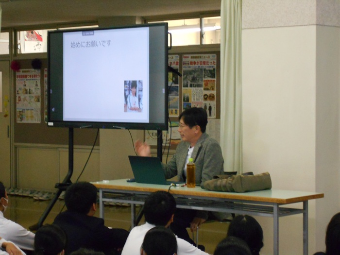 10月29日(水)に岐阜市民病院の副院長である篠田 邦大先生(小児科部長、小児がん専門)を講師としてお招きして、「がん教育」を行いました。最初の紹介では、中学3年生のときにサッカー部に所属し、地区大会で優勝したときの写真を見せていただきました。なんと梅林中の卒業生であり、とても親しみを感じることができました。大変気さくで、ユーモアのある人柄である篠田先生は、「これから話をするけれど、私がボケたら、笑ってうけてほしい。もし、スルーされると、心が折れて話せなくなってしまうから」と話すと、大きな笑いが起こりました。講話の中では、2人に1人はがんになってしまうほどの病気であることや、がんは体中のどこにでもでき、まれに心臓にもできることを教えていただきました。また、人間の細胞は自分で修復して元気な細胞になることができますが、修復しても治らないと悪い細胞=がんになることなど、がんができる仕組みや、がんにならないために生活習慣を見直すことの大切さを教えていただきました。笑いをまじえながら、楽しく講話を聞くことができました。