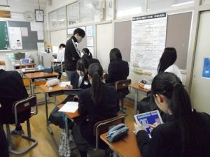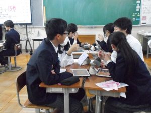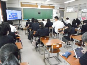 11月12日(水)の1時間目の学活では、「学習について考える日」として後期中間テストの取組について振り返り、次の後期期末テストにどのようにつなげていくのかを考える全校学活を行いました。学習指導部長の岩西先生からオンラインで全校に話をして、後期中間テストの計画表をもとに「授業の姿」「家庭学習」「計画性」「提出物」の4つの視点から振り返りながら、これらの視点のレーダーチャートとしてグラフ化しました。授業の終わりには、学習班でダブレットを使いながら交流をしました。3年生の仲間との交流後には「計画表を毎日忘れずに出している子はテストの結果が伸びている感じだった。私はあまり提出できていなかったら、次はラストのテストだし、テスト勉強と同じくらい計画表も使って、毎日出せるようにしたい。」という感想がありました。今回の学習について考える日の授業で考えたことや学んだことを、後期期末テストの取組に生かせることを期待しています。