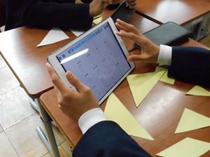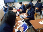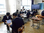 1月7日(水)の冬休み明け、本校は2期制であるため通常の授業が行われました。2年1組の国語の授業では、冬休みのできごとを「冬休みスピーチ」として、指名なし発言で行っていました。このスピーチでは、聞き手を引き付けるために導入を工夫することや、スピーチ内容をわかりやすくするために「一言で表す」ことをするなどして、冬休みにあったことを全員の前で発表する姿がありました。指名なし発言であることから、自ら発表することにためらいがありましたが、それでもスピーチをしようと自ら立ち上がる姿がすばらしいと感じました。2年3組の数学の授業では、これまで学習してきた数学の図形の応用として、正方形の紙にいくつかの線が引かれたものをハサミで切り分け、それらの図形をすべて使って、動物や植物などの形をつくるものでした。学習班で相談したり、自分一人で考えたりしながら、図形が完成したときは「できたー!」と歓声があがっていました。どちらの授業も、長期休みから学校再開のスタートになるときに、学習意欲を上げようとする工夫した授業でした。