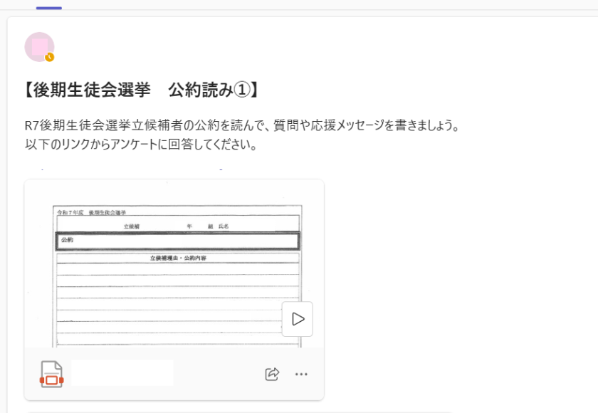 9月30日は、副会長立候補者の公約を読み、立候補者への質問や感想を考えました。