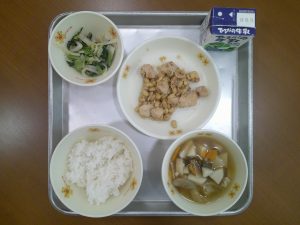 大豆、こまつな、大根、油揚げ、さといも、豆腐、米、牛乳の8種類が使われています。