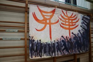 また、美術部が制作した生徒会スローガン旗も展示していただきました。