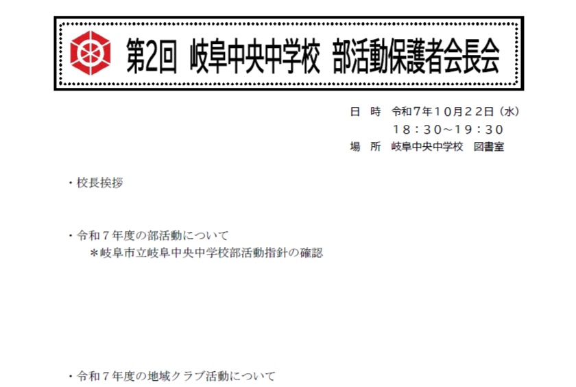 ・令和7年度の部活動について *岐阜市立岐阜中央中学校部活動指針の確認
