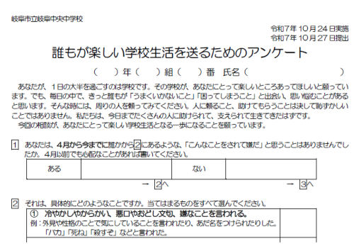 いじめアンケート配付