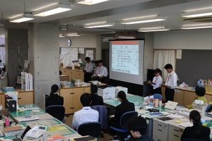 後期生徒会役員が職員に生徒会スローガン及び活動計画(案)を発表しました。