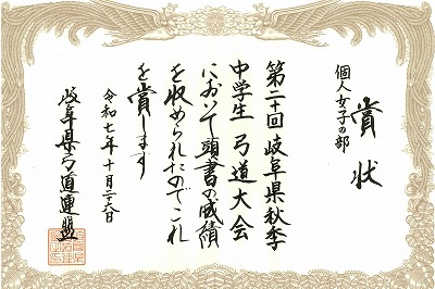 表彰[第20回岐阜県秋季中学生弓道大会]...
