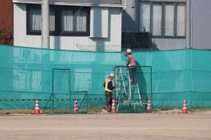 10月30日に、運動場南側のネットの修繕を行っていただきました。