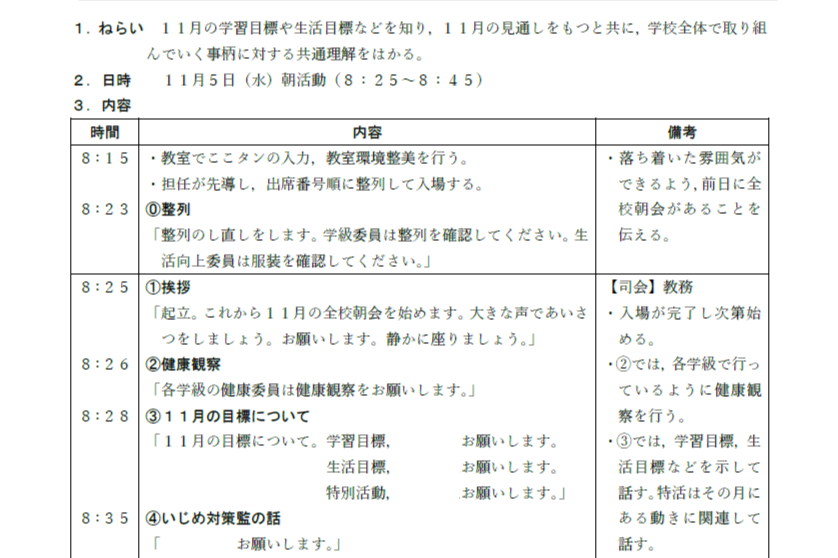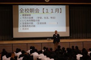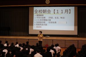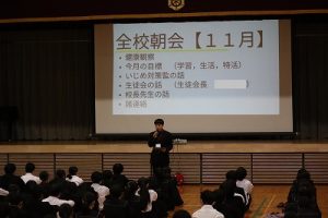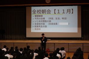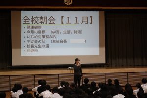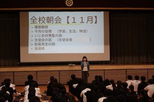 11月5日、全校朝会を行いました。*いじめを見逃さない日