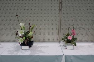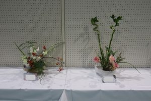 「展示の部」では、茶華道部による作品と、