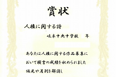 詩の作品 入選…2名 佳作…2名 努力賞…2名