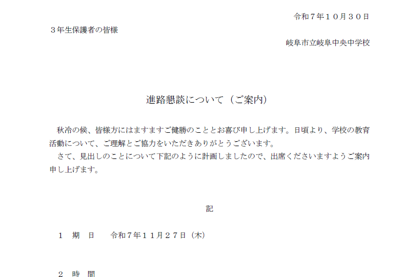・内容…中学校卒業後の進路について