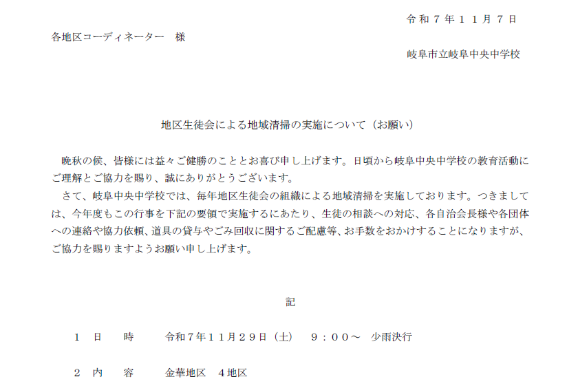 中学生と共に清掃に取り組んでいただいた地域の皆様、ありがとうございました。