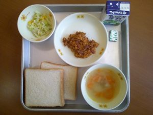 チリコンカンを、食パンにたっぷりはさんで食べましょう。