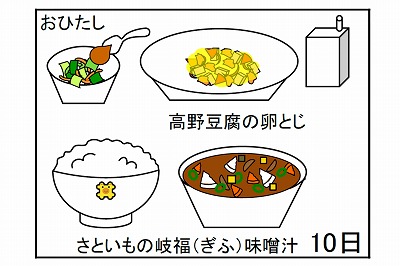 給食では、岐阜県産の乾燥大豆を水につけて戻し、時間をかけてやわらかく煮ています。