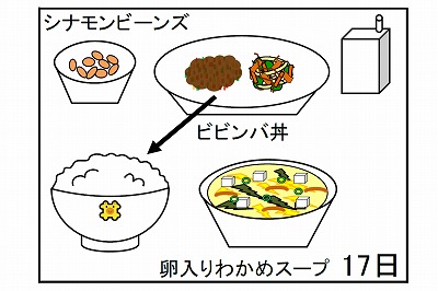 みなさんも、ごはんに具をのせて、よく混ぜて食べてみてください。