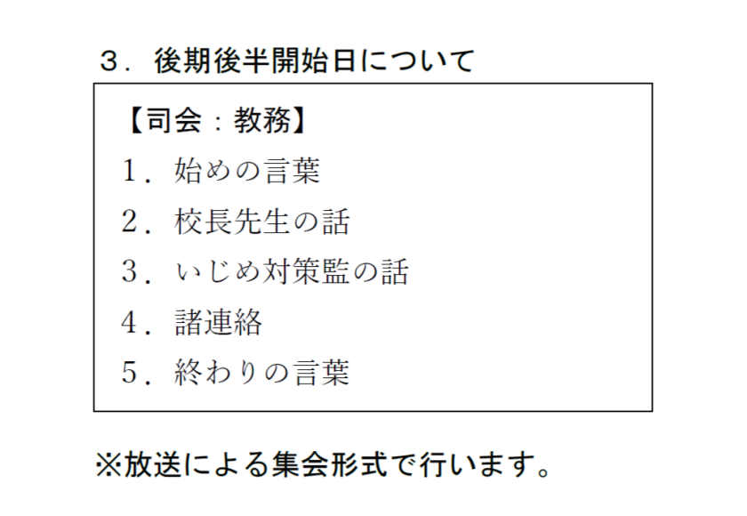 1月7日は、後期後半開始という節目の日ということで、全校集会を行いました。
