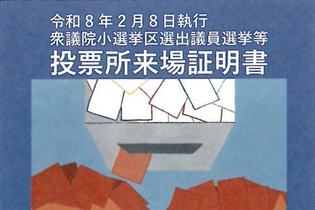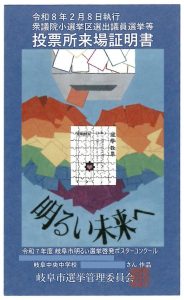 令和8年2月8日執行 衆議院小選挙区選出議員選挙等 投票所来場証明書に、