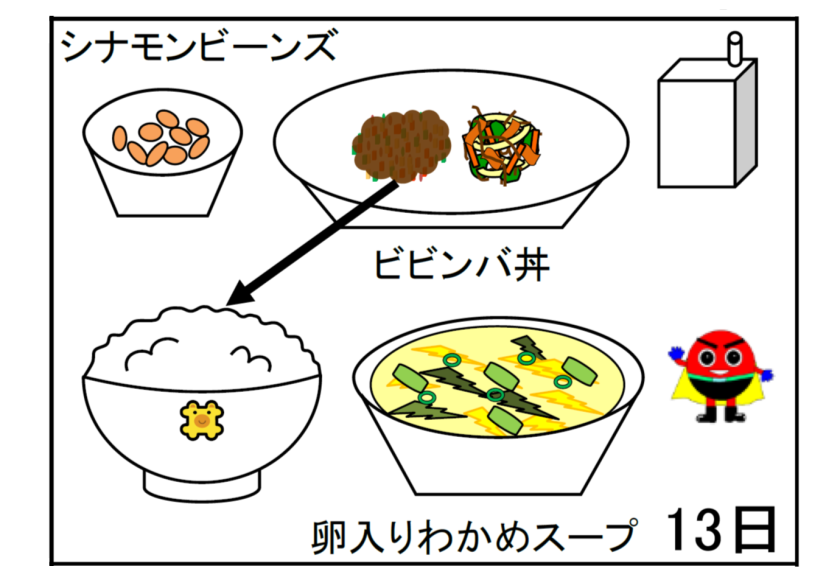 給食では揚げパンにまぶしたり、今日のようにフライビーンズにまぶしたりして使います。