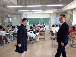 岐阜小学校の子どもたちが生き生きと取り組んでいる「ふるさと学習」、学校と家庭と地域が一体となって活動している学校運営協議会の活動、チームで取り組んでいる教育活動や環境の整った校舎を実際に見てみたいとわざわざ来てくださいました。