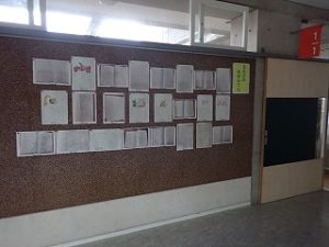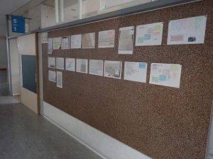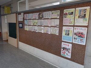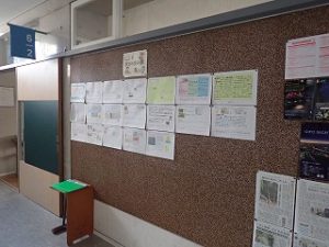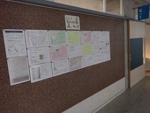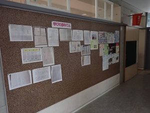 子どもたちは、ロイロノートでもお互いの家庭学習の内容や方法を交流していますが、廊下掲示板では、今のがんばりやこれまでのとっておきの学習が紹介されており、日頃は見れない他学年の学習が見れることがポイントです。