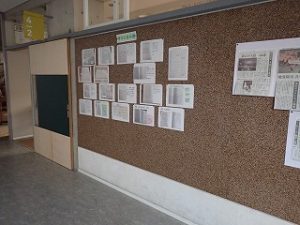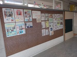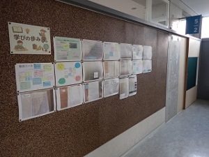 現在、1年生から6年生の各学級の廊下掲示板で『学びの歩み展(学習交流)』が行われています。