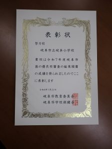 本校はこのたび、令和7年度『岐阜市歯の優良校表彰』を受賞いたしました。