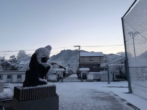 また、運動場は一面の雪景色でとても魅力的な状態となっていますが、足元は大変滑りやすくなっていますので、十分ご注意ください。安全に登校・移動していただくため、次の点を意識して行動をお願いいたします。