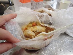 今回の実習は、耐熱性ポリ袋を使ったカレーライスづくり