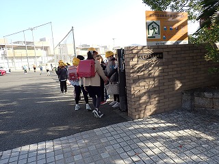 保護中: 6年生、最後のランドセル登校と笑顔のあいさつ活動