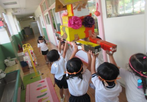 年長さんは割り箸を使ってマルチに穴を開けてから、苗を植えました。「船底植え」と言って、苗を船の底の形のようにカーブさせて土の中に入れ、土を被せ、両手で土を固めます。