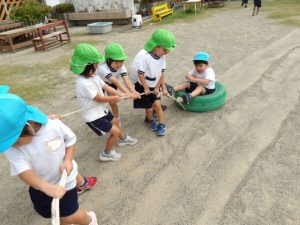 「一人じゃ無理!誰か手伝って!」と、引っ張る子もまた友達を呼び、集まってきます。