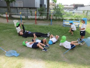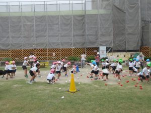 新しい運動要素を取り入れたり、繰り返し遊んだりして、体の動かし方を知ったり、友達と一緒に体を動かす楽しさを感じたりする経験をしていきたいと思います。