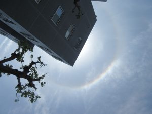 さて、日がげに寝転がる子どもたち。「どうしたの?」と聞いてみたら、「寝転んだら見える虹がある!」と教えてくれました。