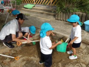 「今回は一緒に鬼ごっこや砂場遊びをしました。一緒に遊んだ子たちがとても速く走っており、前回参加した時と比べてとても成長していると感じました。暑い中でしたが元気に遊ぶ娘やお友達の様子が見られて良かったです。