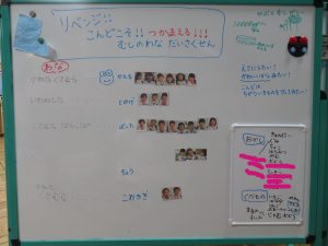 どうして捕まえたいと思うのかを尋ねると、「かわいいから」や「飼っている生き物の餌にしたいから」「(今、既に生き物を飼っていて、)違う生き物も飼ってみたいから」との意見でした。思いを聞いてみると、一人ひとりそれぞれ理由が違って、「なるほど・・。そう思っていたのね。」と初めて知ることもあり、『思いを話す』『思いを聞く』って大切だなと思う時間でした。