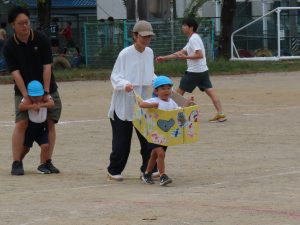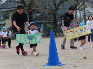 やはり、大好きなお家の人のところまで走るのは嬉しいですね。スタート地点から走る子どもの後ろ姿からハートがたくさん見えてくるようでした。