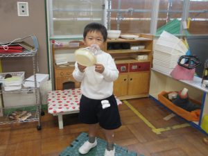 思い切り遊んだ後の片付けも、みんなで片付けようとする姿も見られます。「先生は(手伝わなくても)大丈夫!みんなでやるから!!」