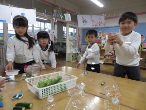 子どもたちが図鑑などで得た知識や情報をもとに、キュウリやレタス、リンゴの皮などを餌にして罠を仕掛けました。