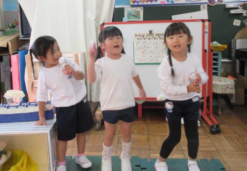 先週の親子ふれあいフェスティバルを経て、また一段と逞しくなり、いろいろなことをやってみたい気持ちが膨らみ、友達とも相談しながら遊ぶことが楽しくなってきた気がします。きっとご家庭でも、たくさんお話してくださったのでしょう。「運動会、楽しかったな〜。」「またカプラ大会したいな〜。」と話す子がいます。