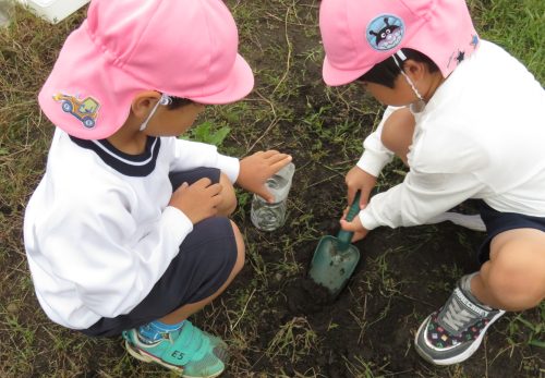よく見ると、根が出てきているものがありましたが、まだまだのようでした。草が生えてきたら、草抜きに行こうと思っています。4月にれんげ畑で遊んだことを覚えている子もいましたので、登降園の際や日頃通られたら、気に掛けていただけると幸いです。