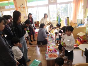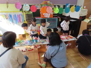 全員参加でなかったのが悔やまれます(泣)参加できなかった保護者の方、登降園の際にお声がけください。ぜひ、子どもたちからチケットをもらい、買い物していってくださいね🎵