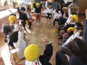 ↑いつも、ことあるごとに、子どもから「やろう」と言い出す「エイエイ、オー」