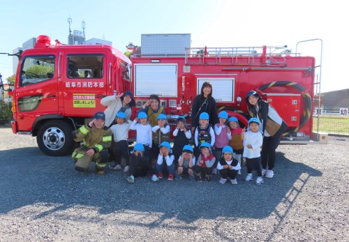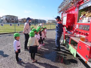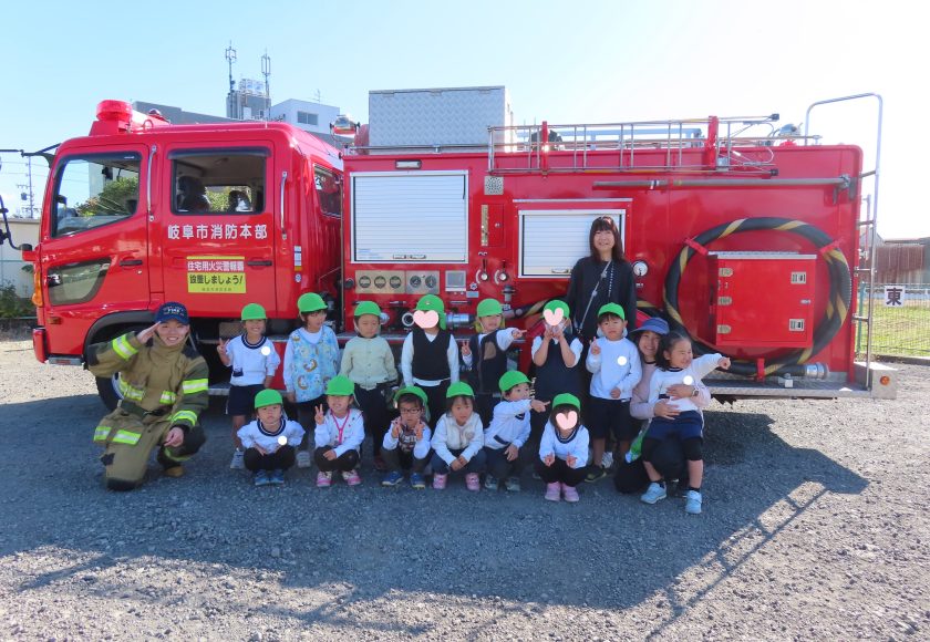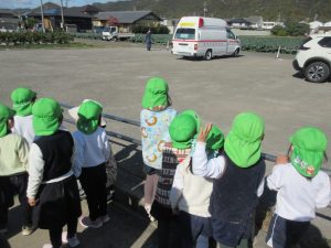 消防車は出動が入り、「お仕事がんばってね!」と声をかけながら、見送りしました。